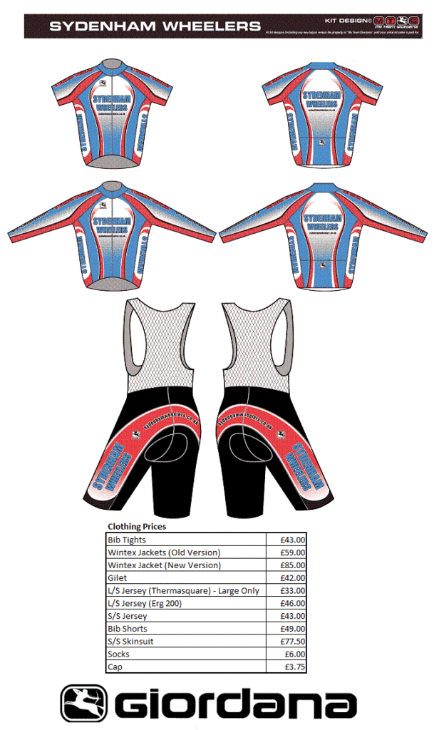 We have a full complement of clothing from Giordana, DeFeet and Impsport. Dave Twin (contact details above) is the man to speak to about clothing and we have most items/sizes in stock most of the time.